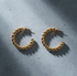 The Chasina statement twisted hoop earrings are the perfect piece to wear on their own or layered with another earring. Its beautiful twisted and textured frame is sure to become a staple in your wardrobe. These hoops are elegant and lightweight making them comfortable to take on and off. The Chasina hoops are made from 18k gold plated stainless steel for maximum wear.