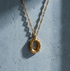 The Gabriella necklace is the perfect statement piece to wear on its own or layered with another chain. This necklace comes on our beautiful rope chain making it both elegant and dainty. The Gabriella necklace has been plated from 18k gold with a beautiful hollow oval pendant.